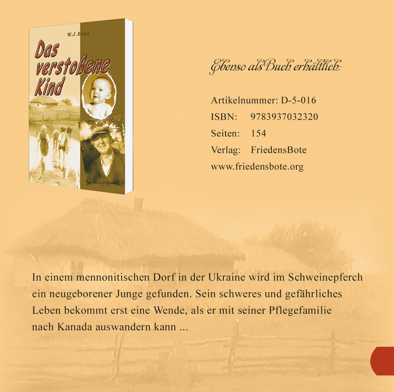 Russland in der zweiten Hälfte des 19. Jahrhunderts. Im kleinen mennonitischen Dorf einer deutschen Kolonie wird im Schweinepferch ein neugeborener Junge gefunden. Bei lebender Mutter wird er zur Waise.