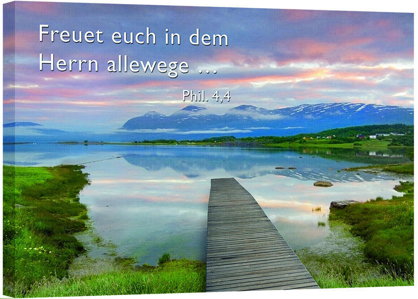 Mit dem Bibelvers:Freuet euch in dem HERRN allewege...Phil. 4,4Beim Versand von Bildern ab dem Format Breite 60 oder Länge 120cm wird ein Zuschlag für Sperrgut in Höhe von 16,00€ berechnet.