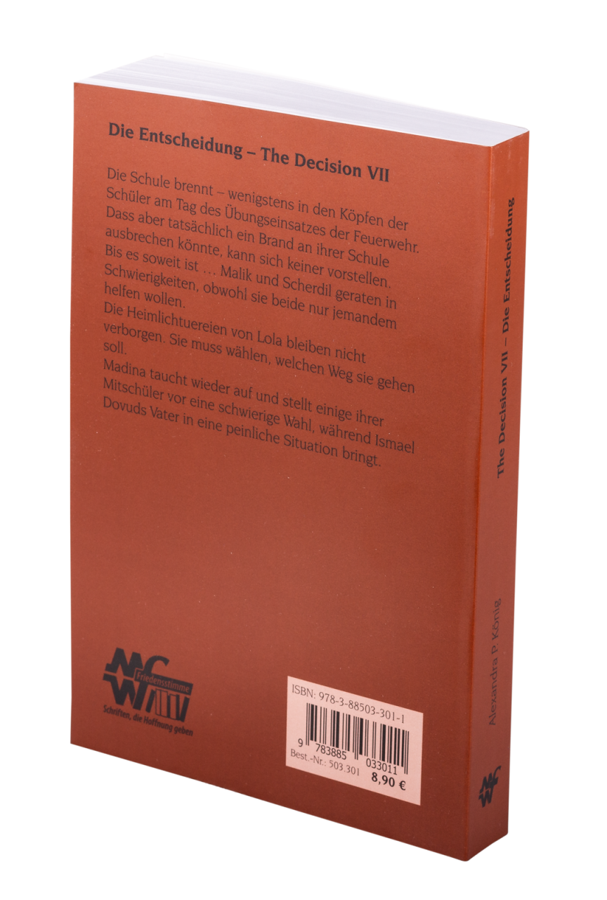 Die Schule brennt – wenigstens in den Köpfen der Schüler am Tag des Übungseinsatzes der Feuerwehr. Dass aber tatsächlich ein Brand in ihrer Schule ausbrechen könnte, kann sich keiner vorstellen. Bis es soweit ist … Malik und Scherdil geraten in Schwierigkeiten, obwohl sie beide nur jemandem helfen wollen. Die Heimlichtuereien von Lola bleiben nicht verborgen. Sie muss wählen, welchen Weg sie gehen soll. Madina taucht wieder auf und stellt einigen ihrer Mitschüler vor eine schwierige Wahl, während Ismael Dovuds Vater in eine peinliche Situation bringt.Für Jungen und Mädchen ab 12 Jahren.