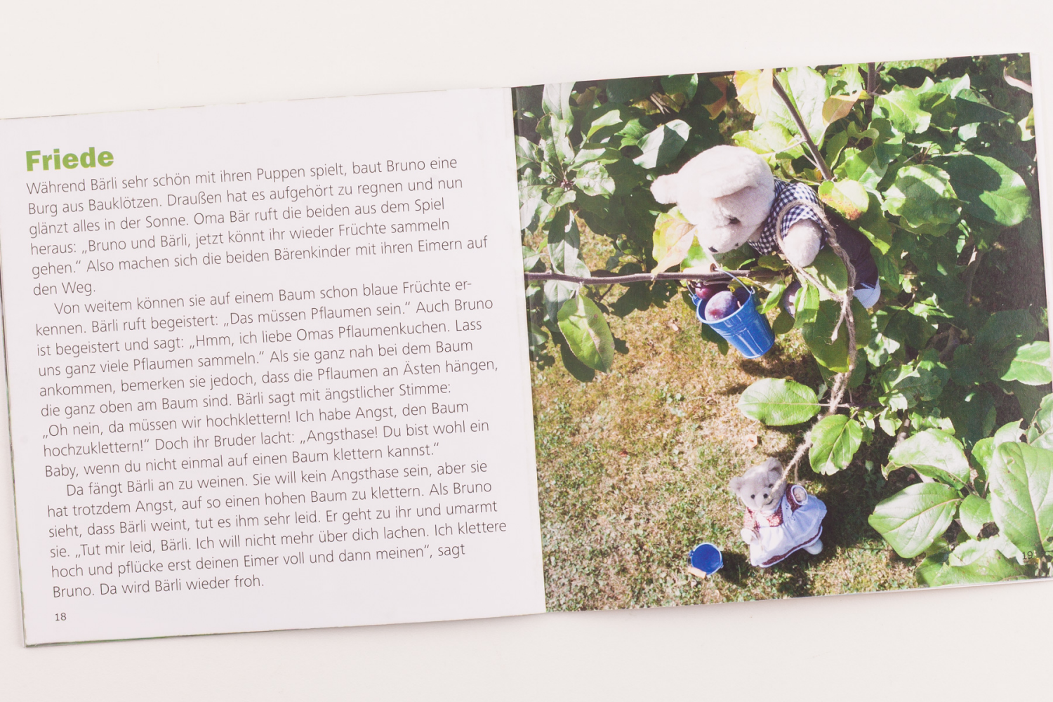 Die beiden Heftchen "Gute Früchte sammeln" (1+2) vermitteln den Kindern anhand einer Bruno & Bärli-Geschichte anschaulich, welche Frucht der Geist Gottes in ihrem Leben bewirken möchte. Zu jeder Frucht können die Kinder auch einen Bibelvers lernen.
