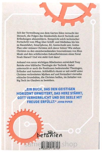Anhand von neun wichtigen Bibeltexten entwickelt Tony Reinke eine biblische Theologie der Technik. Dabei untersucht er auch die Positionen bedeutender Theologen, Erfinder und Autoren. Schließlich räumt er mit zwölf unter Christen verbreiteten Mythen auf und formuliert vierzehn ethische Grundsätze, die Christen helfen, im Zeitalter von Big Tech im Glauben im Glauben zu bestehen.