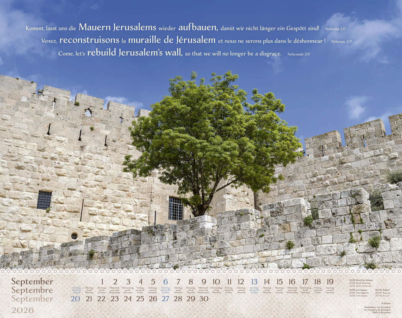 Geliefert wird er sicher in einem stabilen Versandkarton, damit er in einwandfreiem Zustand bei Dir ankommt. Der Kalender ist auch als Tischkalender erhältlich, perfekt für jeden Raum oder als besonderes Geschenk für Deine Liebsten. Lass Dich von der reichen Kultur und Geschichte Israels inspirieren und sichere Dir jetzt Deinen Kalender für 2026!