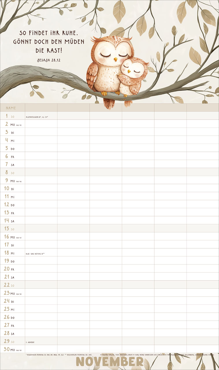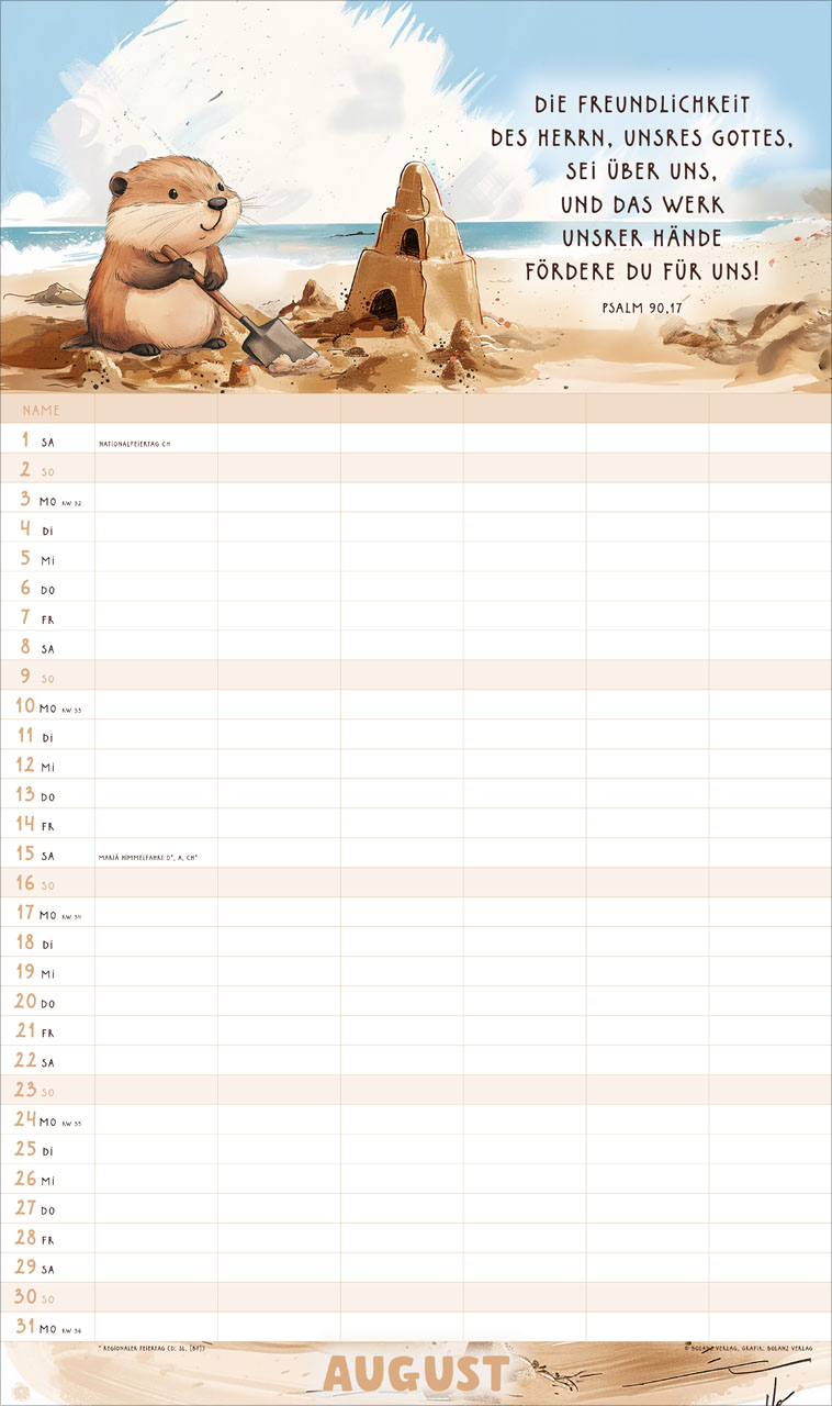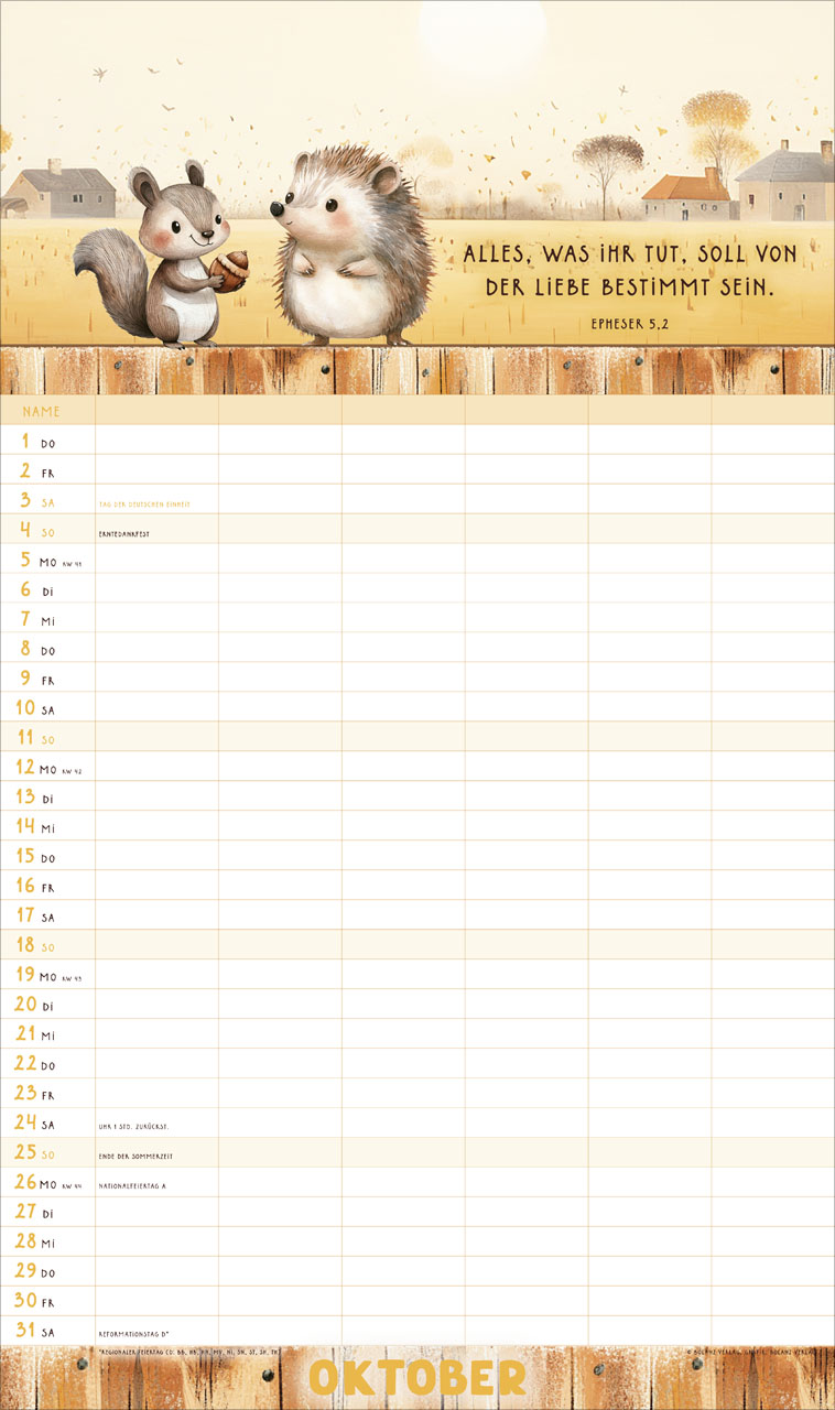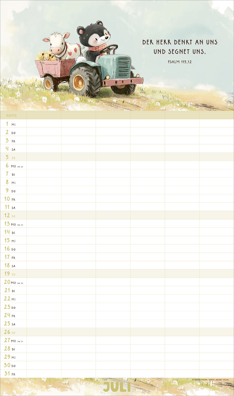 Mit fröhlichen Zeichnungen und inspirierenden Bibelversen wird das Planen zum Vergnügen und bringt eine positive Note in deinen Alltag. Auf dem Rückblatt findest du eine Übersicht der Schulferien sowie eine praktische Jahresvorschau für 2027, die das Planen noch einfacher macht.