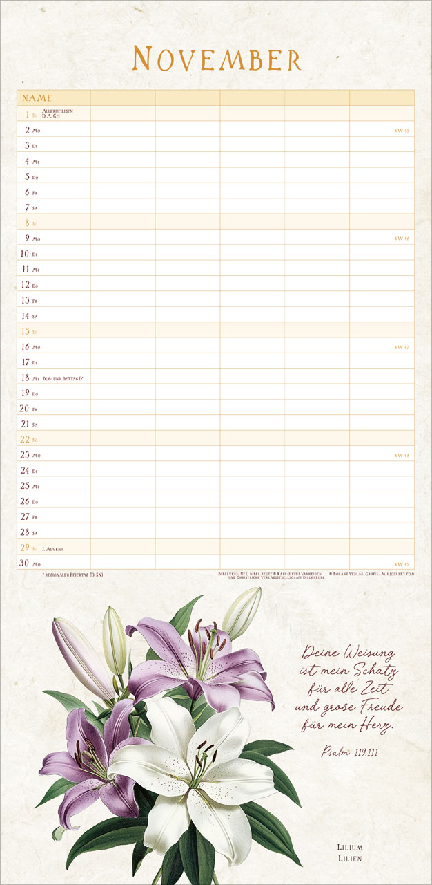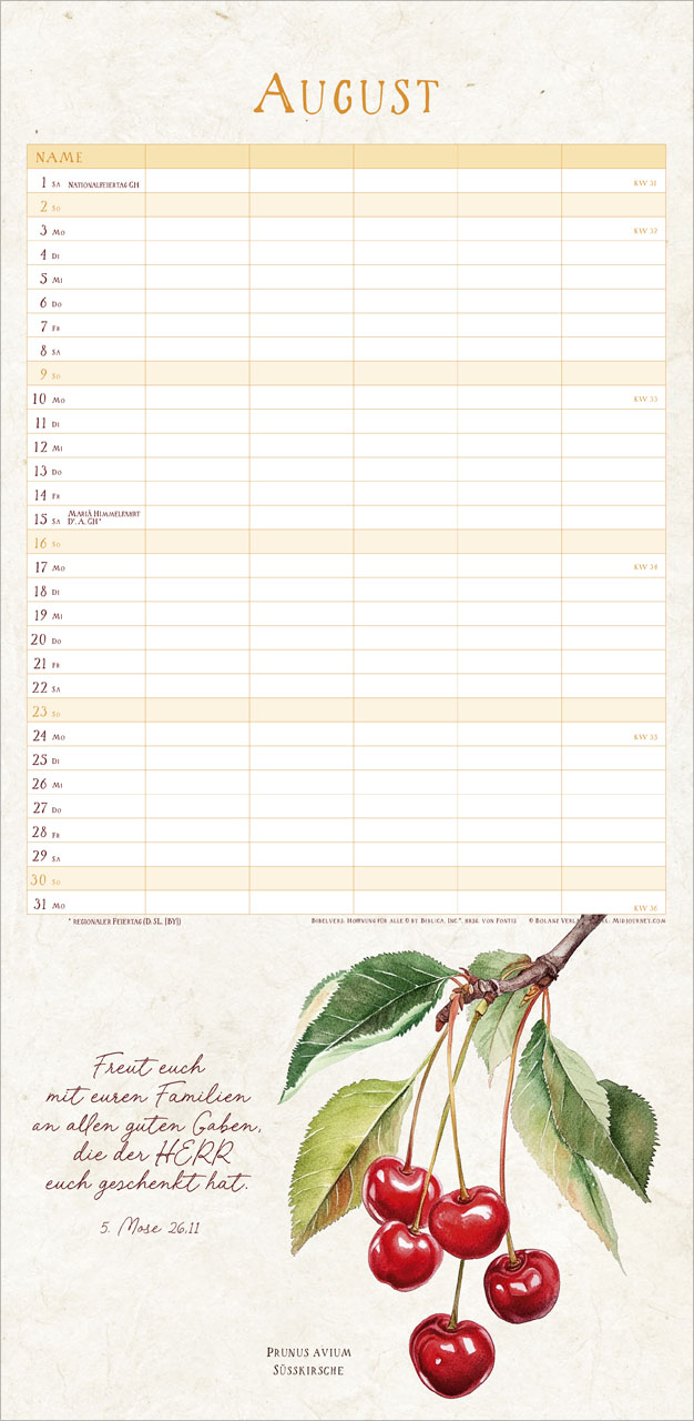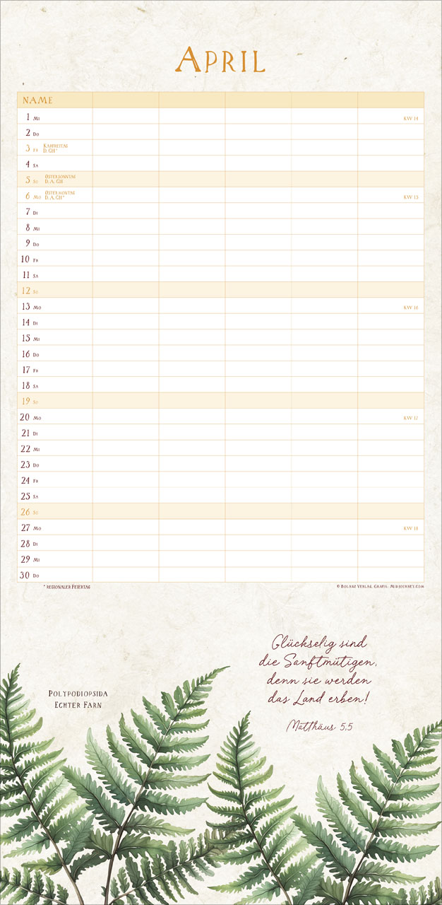 Hergestellt aus FSC-zertifiziertem Papier, steht dieser Kalender für einen bewussten Umgang mit der Schöpfung und verbindet Nachhaltigkeit mit Schönheit.