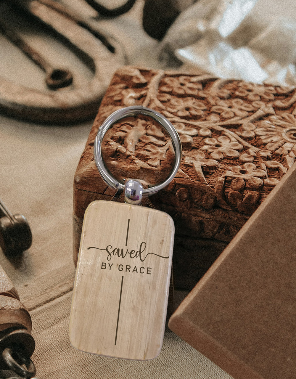 Trage deinen Glauben immer bei dir mit unserem stilvollen Schlüsselanhänger mit dem Schriftzug „Saved by Grace“. Das Besondere an diesem Design: Der Schriftzug formt ein Kreuz und erinnert dich täglich an Gottes Gnade und Erlösung. Ein kraftvolles Symbol, das dir Mut und Zuversicht schenkt.