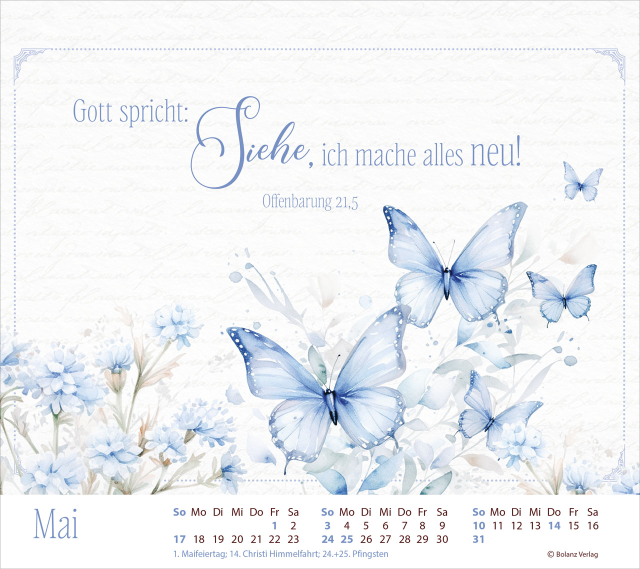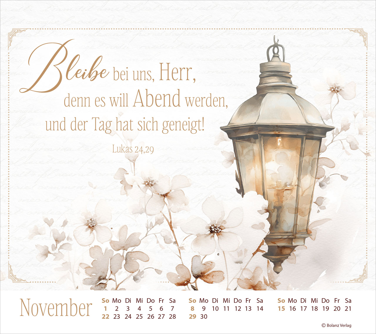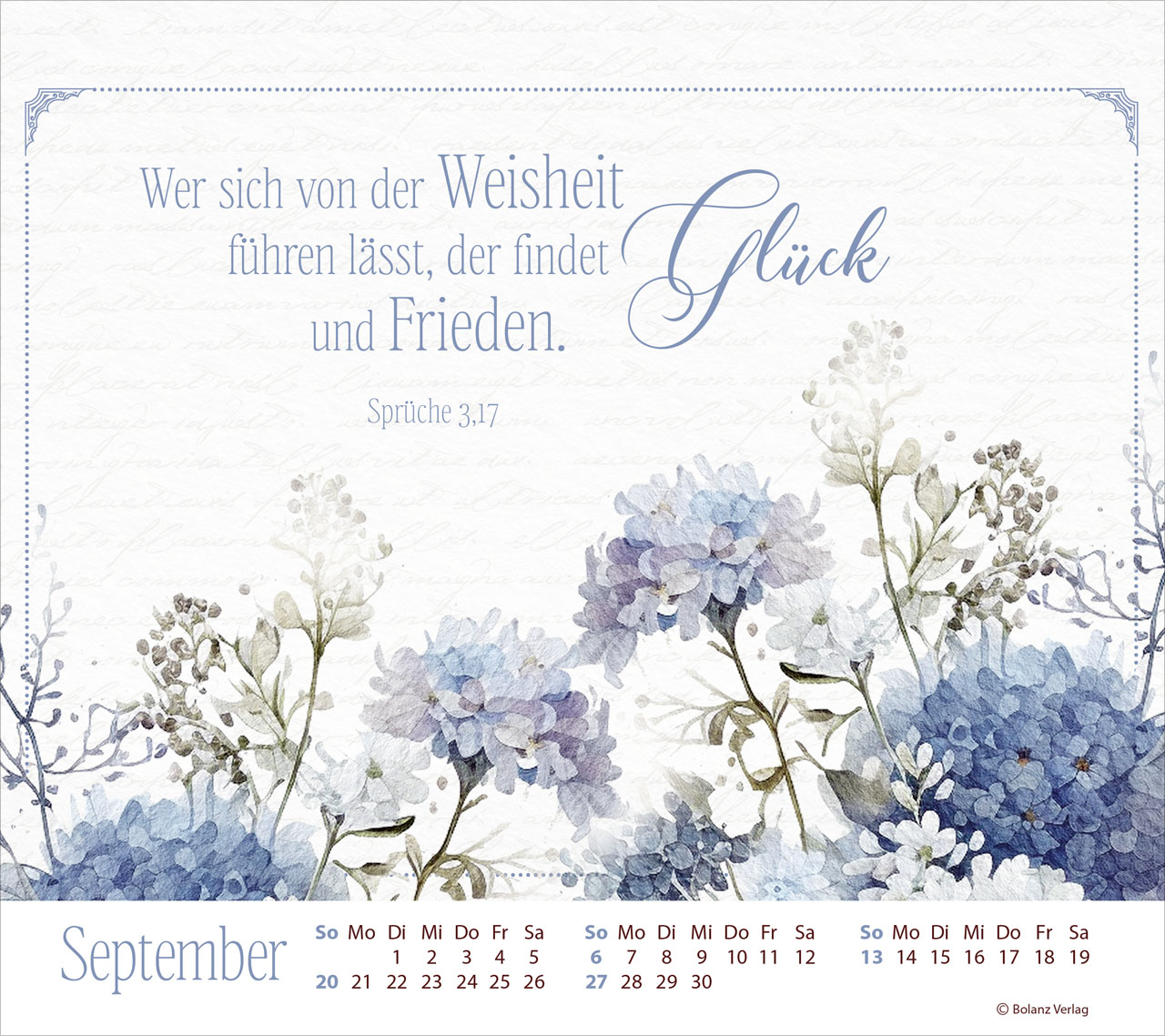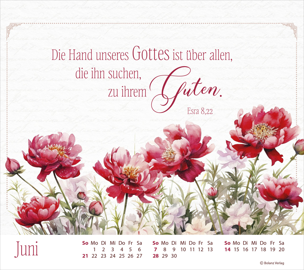 Jeder Monat wird von einem kraftvollen Bibelvers begleitet, der Dich dazu einlädt, innezuhalten und neue Hoffnung zu schöpfen. Dank der praktischen Spiralbindung und des stabilen Aufstellers ist der Kalender nicht nur ein funktionales Hilfsmittel, sondern auch ein stilvoller Blickfang auf Deinem Tisch oder Regal.