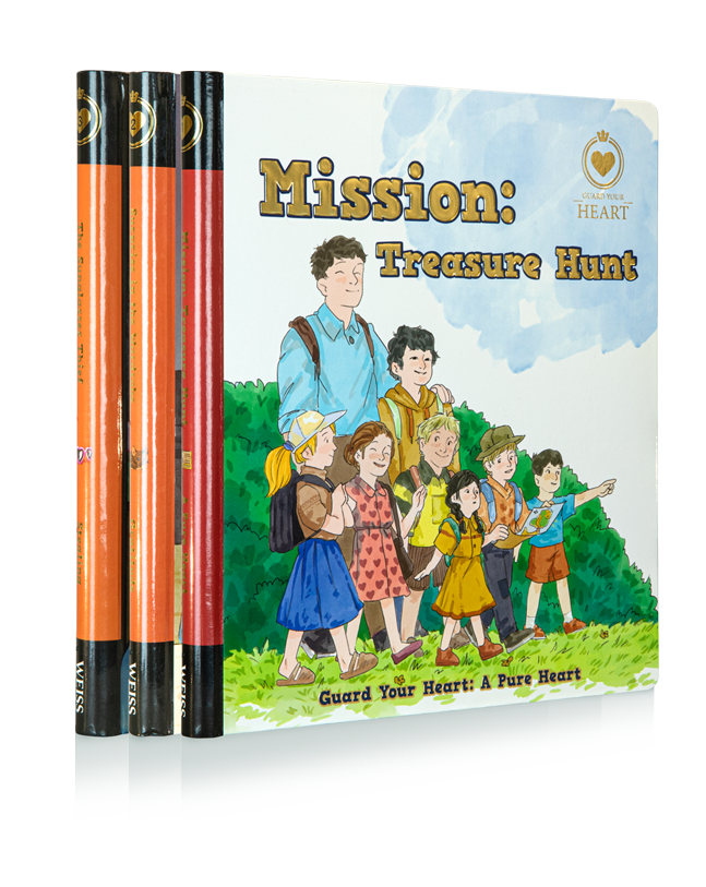 Go on a discovery tour with the King family and learn about the pure heart, guarding your heart against stealing, and increasing gratitude. This book set includes: Book 1 – MISSION: TREASURE HUNT Guard Your Heart: A Pure Heart Book 2 – SURPRISE IN THE WARDROBE Guard Your Heart: Gratitude Book 3 – THE SUNGLASSES THIEF Guard Your Heart: Stealing