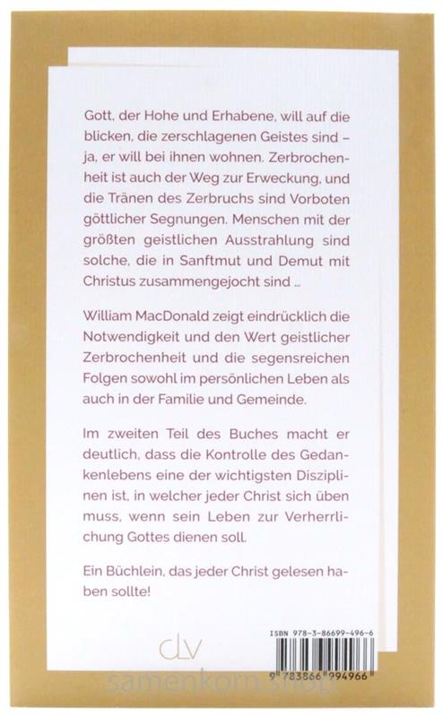 William MacDonald zeigt eindrücklich die Notwendigkeit und den Wert geistlicher Zerbrochenheit und die segensreichen Folgen sowohl im persönlichen Leben als auch in der Familie und Gemeinde.