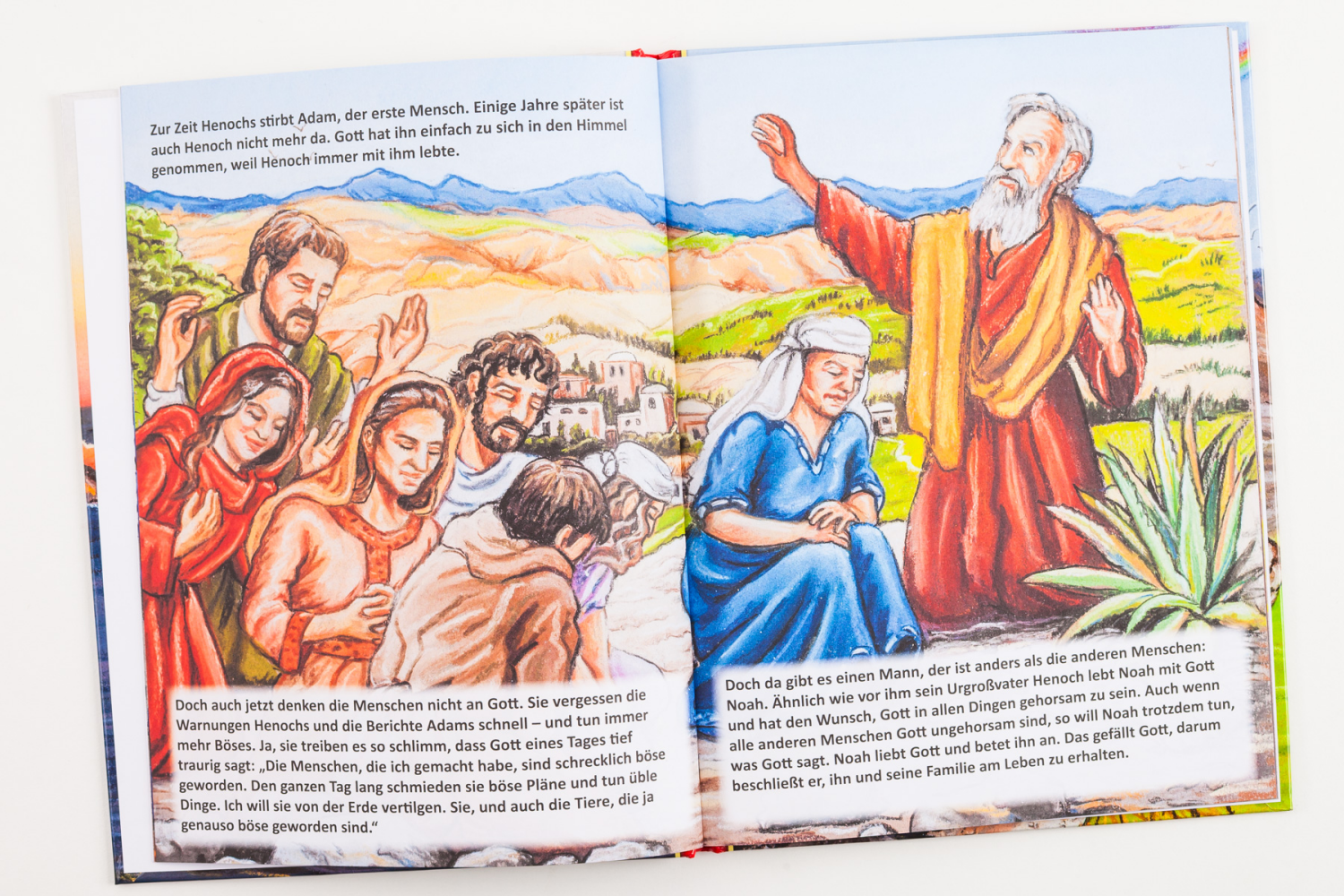 Die Geschichte von der Sintflut gehört zu den bekanntesten Überlieferungen der Heiligen Schrift. Die Nacherzählung in diesem Buch jedoch schildert dieses große Ereignis in besonders enger Anlehnung an die Vorgeschichte und erwähnt auch den gottesfürchtigen Mann Henoch. Neben der Treue Gottes wird vor allem der tatkräftige Glaube Noahs herausgestellt. Einzigartige Bilder machen die Handlung lebensnah und anschaulich.
