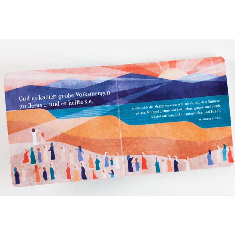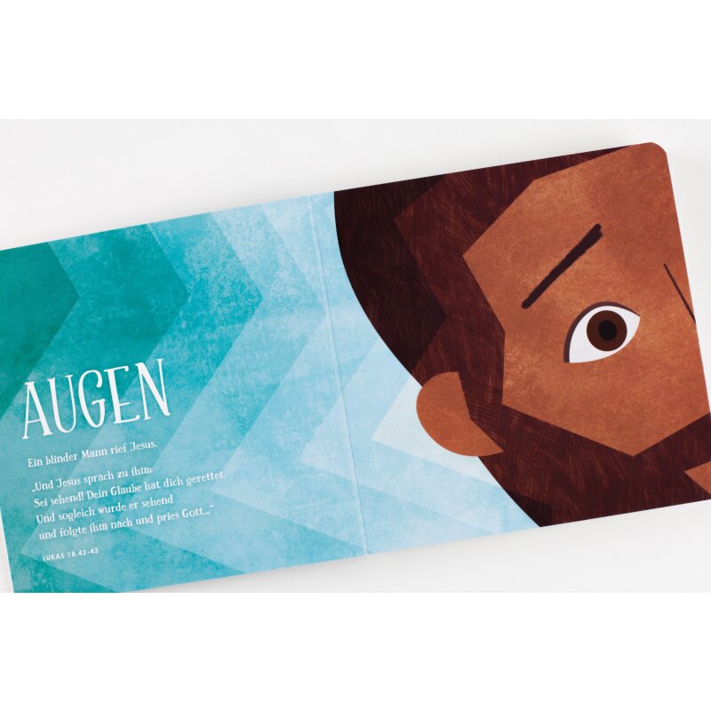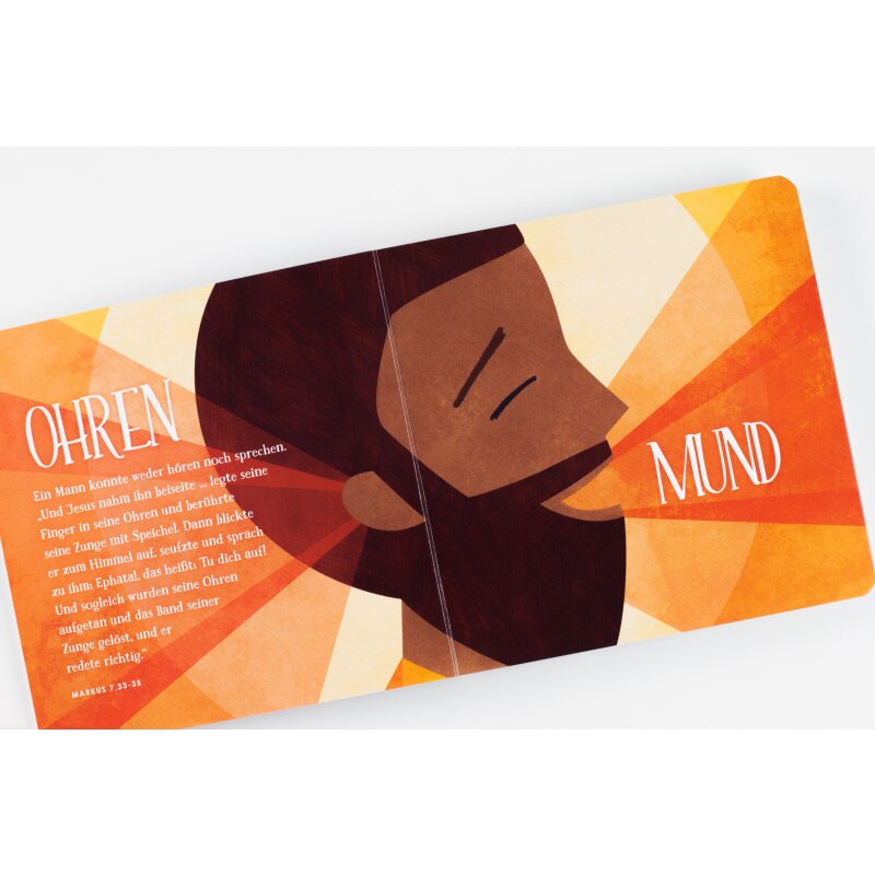 Die Baby-Bibel-Fibeln helfen dabei, kleinen Kindern zentrale Wahrheiten des christlichen Glaubens bereits in frühster Kindheit bekanntzumachen. Diese Glieder-Fibel erzählt davon, wie Jesus Menschen heilte.