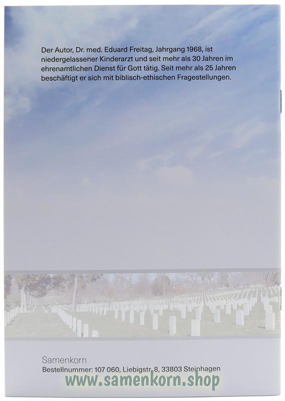 Der Autor, Dr. med. Eduard Freitag, Jahrgang 1968, ist niedergelassener Kinderarzt und seit mehr als 30 Jahren im ehrenamtlichlichen Dienst für Gott tätig. Seit mehr als 25 Jahren beschäftigt er sich mit biblisch-ethischen Fragestellungen.