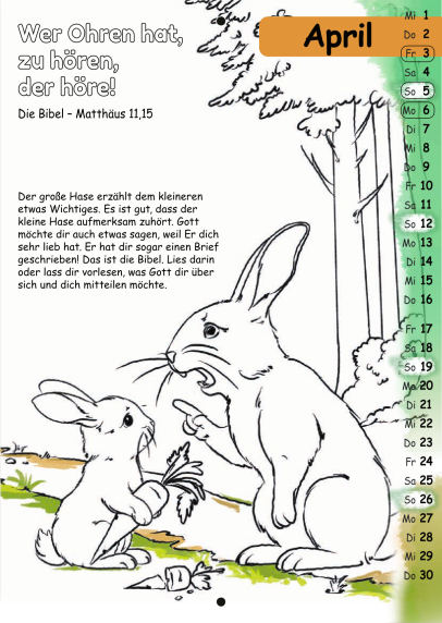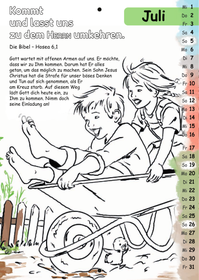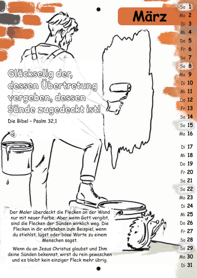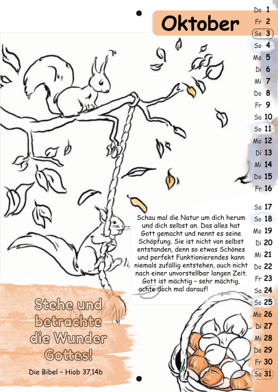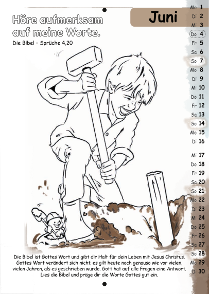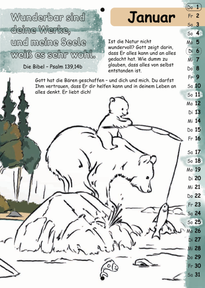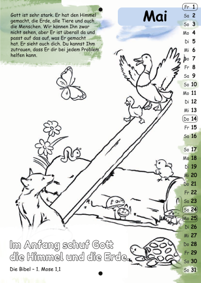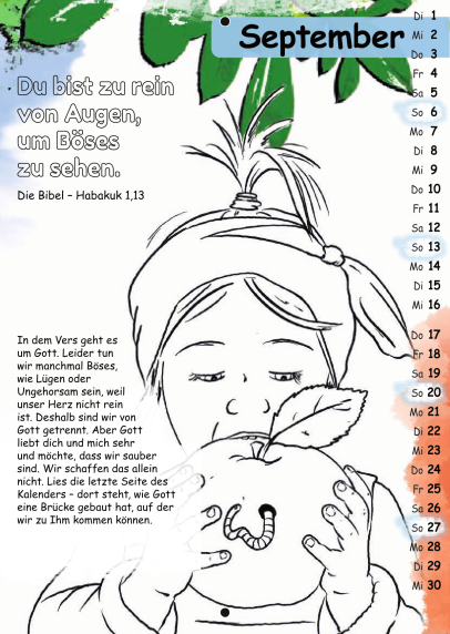 Der Malkalender enthält jeden Monat einen Bibelvers zum