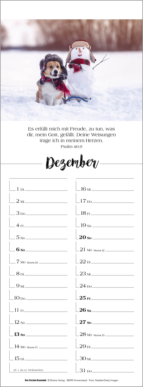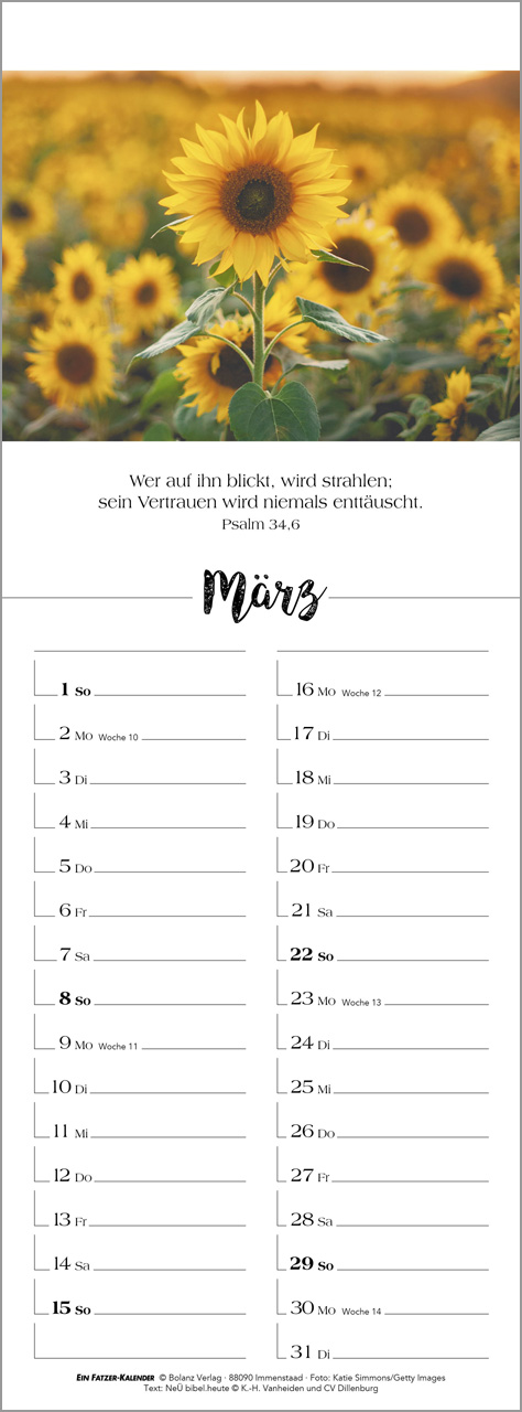 Passende Bibelverse begleiten Dich durch das Jahr 2026 und schenken Dir wertvolle Impulse und Ermutigung für den Alltag. So wird dieser Kalender nicht nur zum praktischen Organisationstool, sondern auch zu einer Quelle der Erbauung.