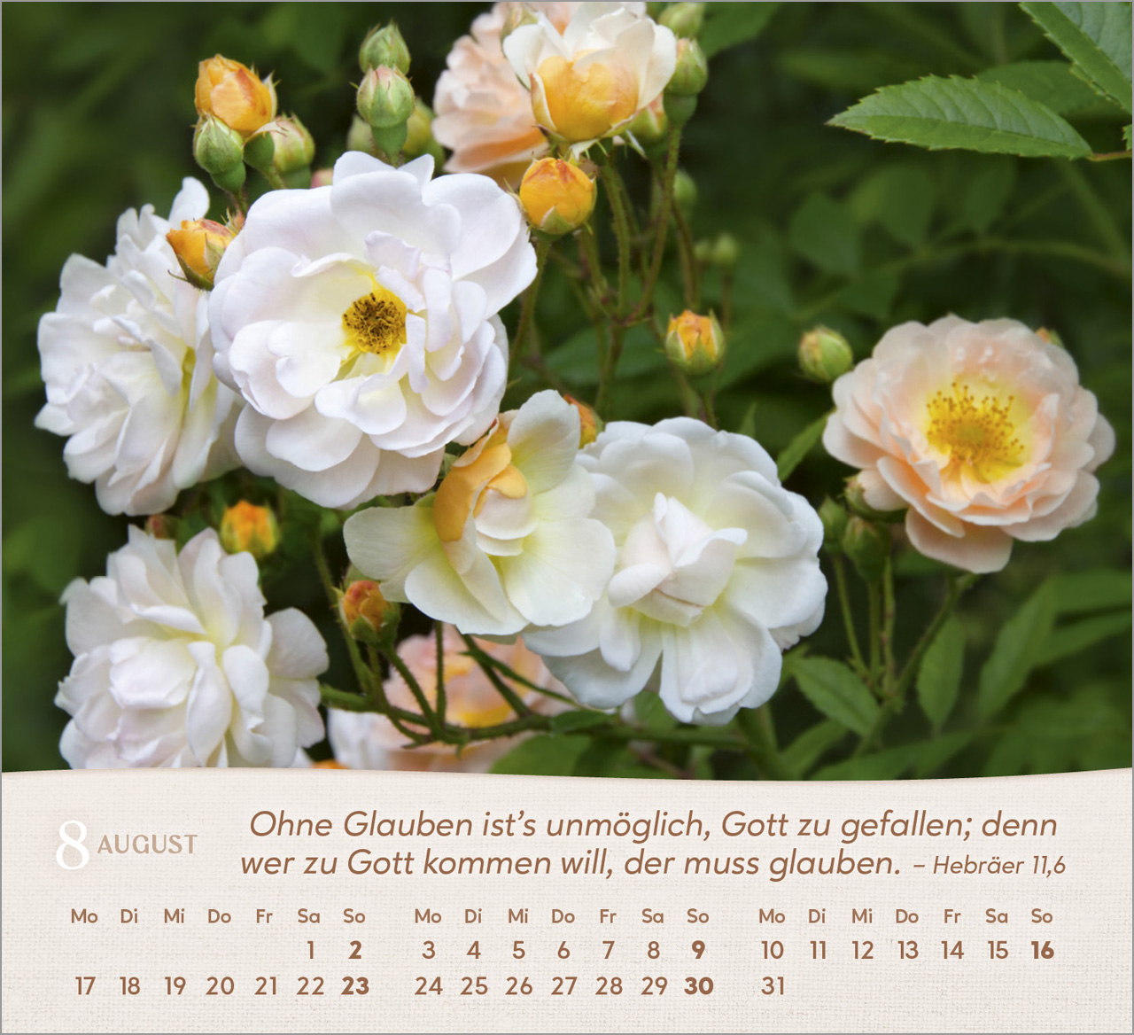Lass Dich jeden Tag von der Schönheit der Rosen und der Inspiration der Bibelverse begleiten!