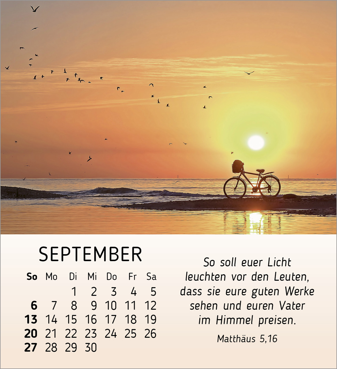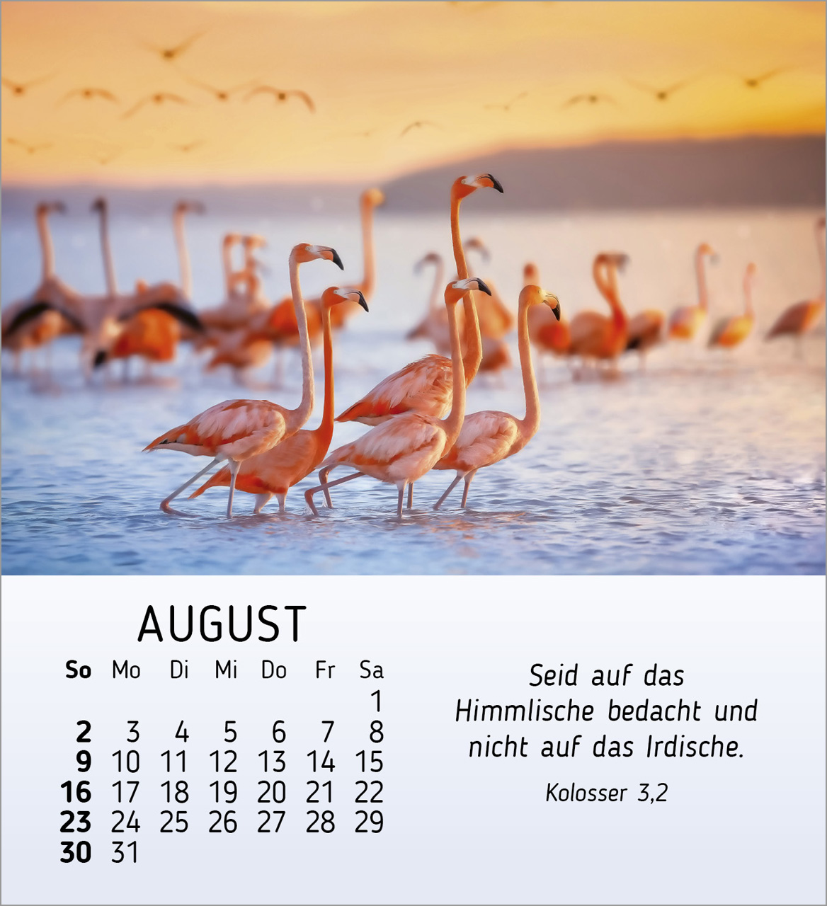 Mit einem handlichen Format von 11,5 x 12,6 cm passt dieser Kalender perfekt auf deinen Schreibtisch oder jeden Tisch in deinem Zuhause. Der praktische Aufsteller ermöglicht es dir, die Schönheit und die Botschaften des Kalenders jederzeit im Blick zu haben.