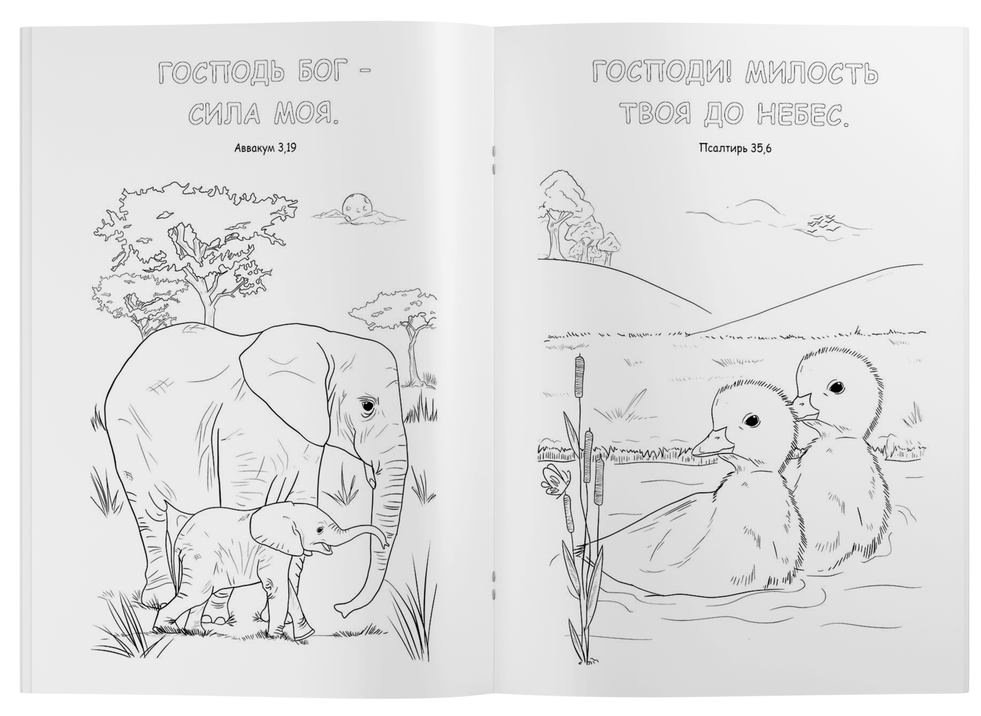 Malheft für Kinder mit Tierbaby-Motiven. Mit Bibelvers auf jeder Seite.