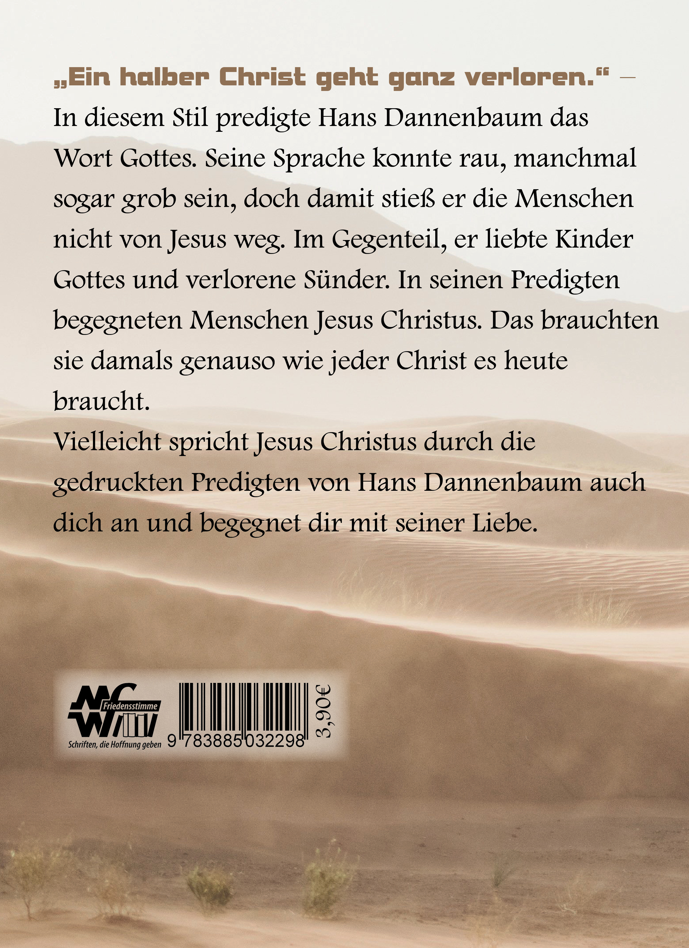 Vielleicht spricht Jesus Christus durch die gedruckten Predigten von Hans Dannenbaum auch dich an und begegnet dir mit seiner Liebe.