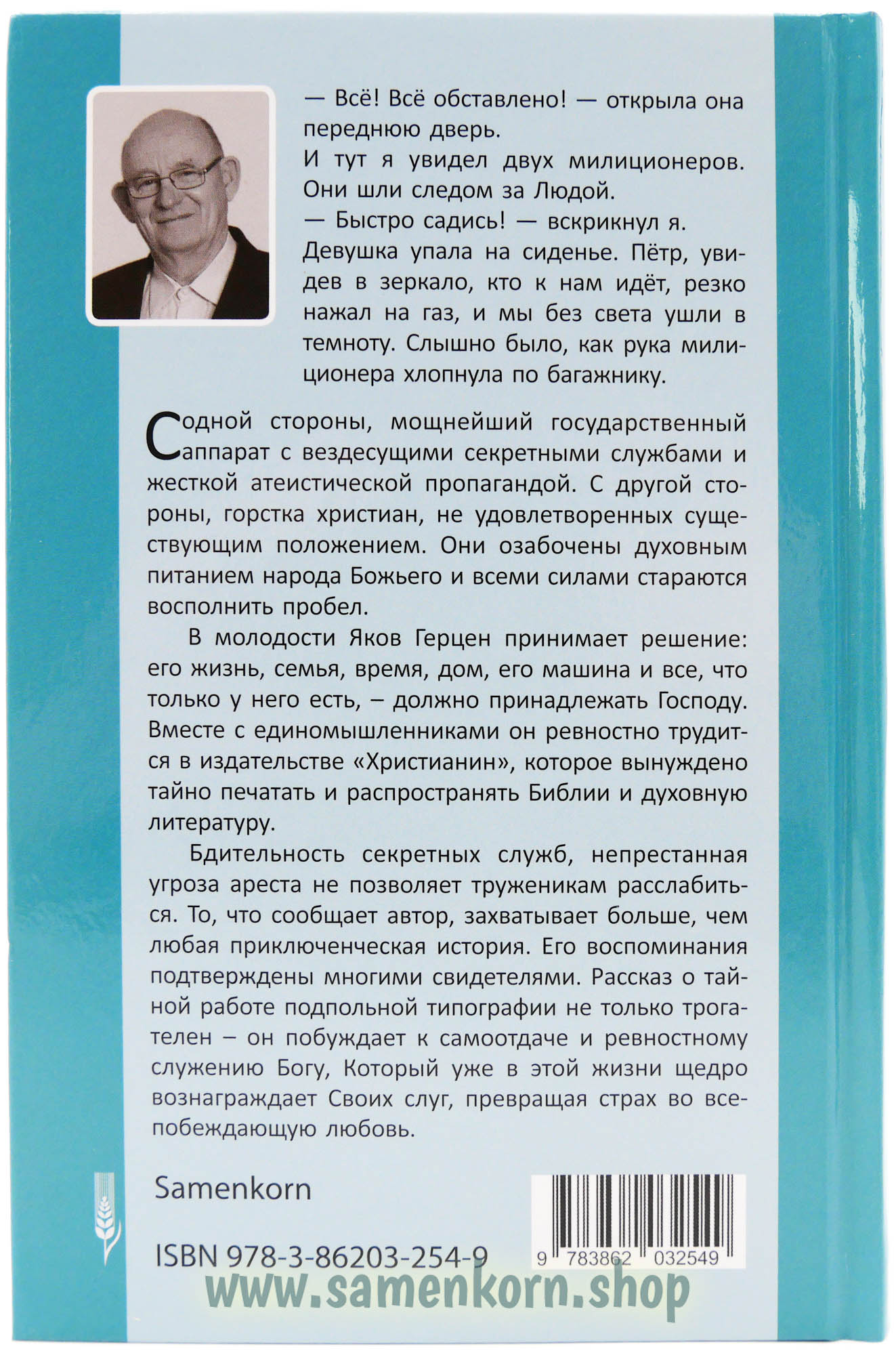 Автор описывает свою службу в Советской Армии и работу издателства «Христианин» в Средней Азии, на Урале и в Сибири. С одной стороны, мощнейший государвтвенный аппарат с вездесущими секретными службами и жесткой атиестической пропагандой. С другой стороны, горстка христиан, озабоченые духовным питанием народа Божьего. Они всеми силами стараются восполнить пробел и при этом раз за разом ощущают высокую, их оберегающую, руку Господа.