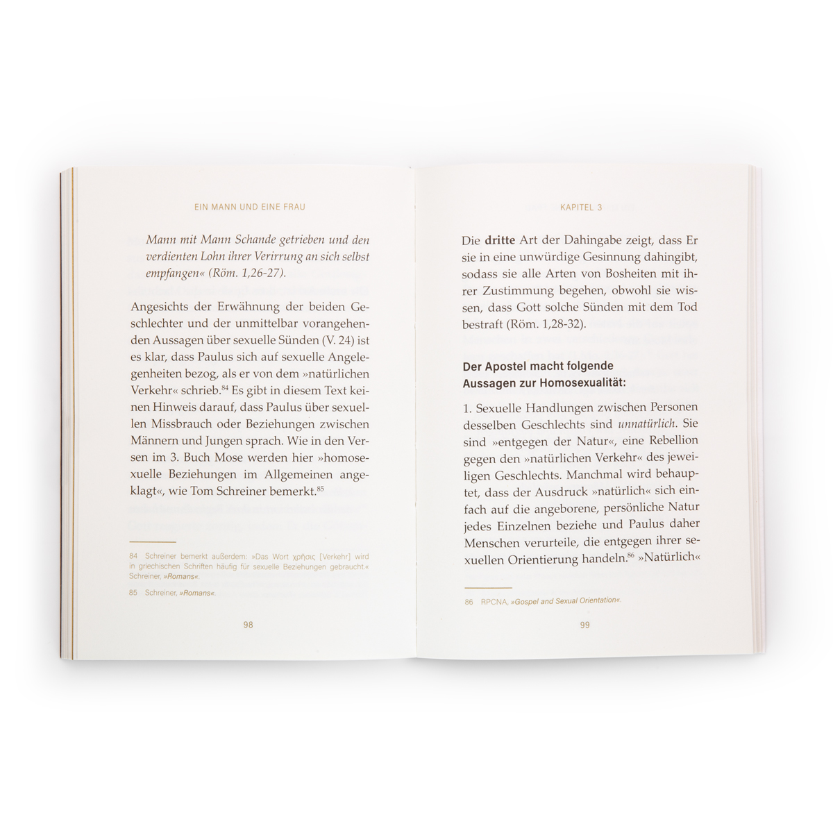 In der Bibel offenbart Gott, dass Er Geschlecht, Sex und Ehe geschaffen, definiert und ihnen eine Bestimmung zugedacht hat, die wir nicht nach unserem Willen verändern dürfen. Durch Seine Gesetze und Sein Handeln in der Geschichte hat der Schöpfer deutlich gemacht, worüber Er sich freut und was Er segnet – und was Er verabscheut und bestraft.