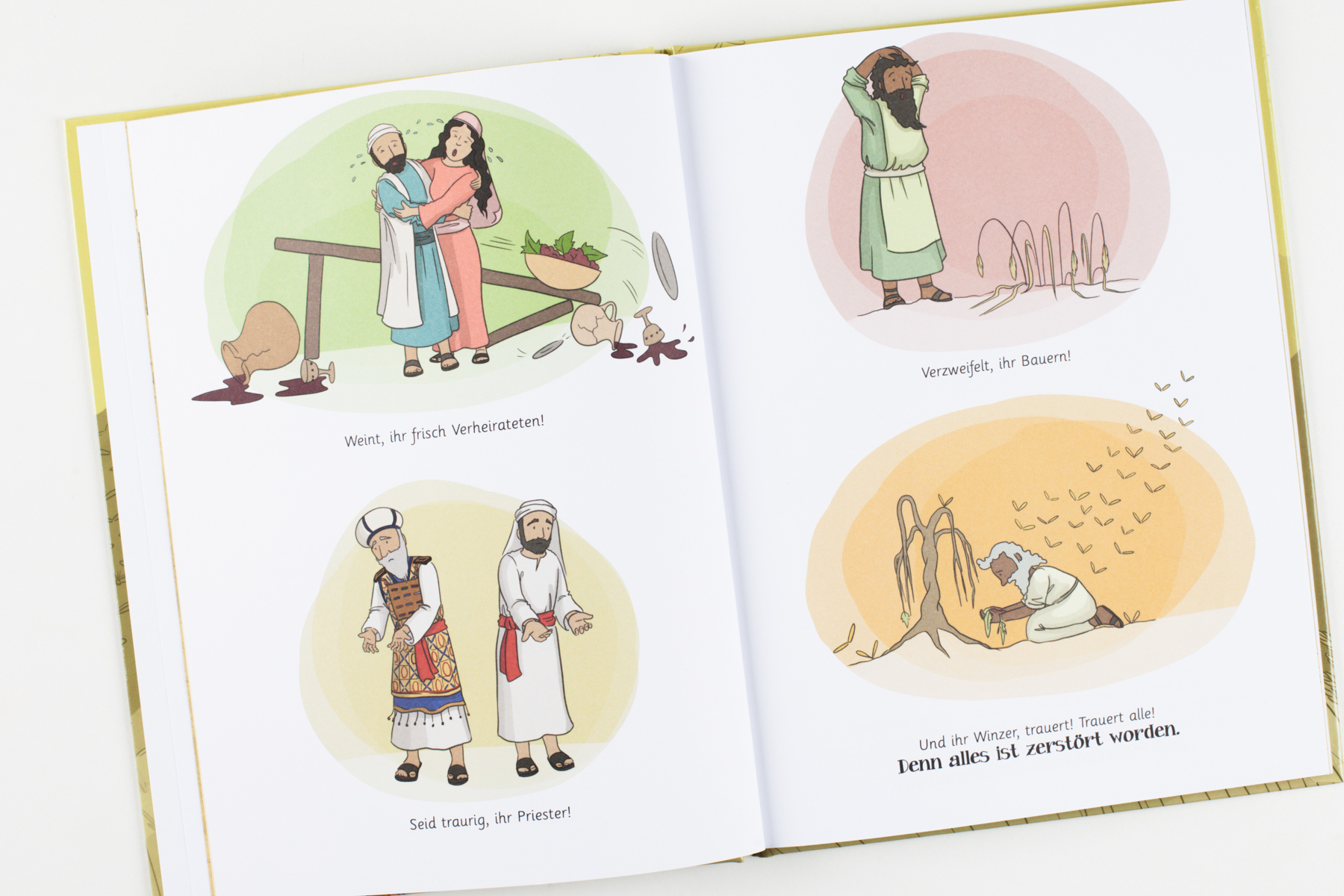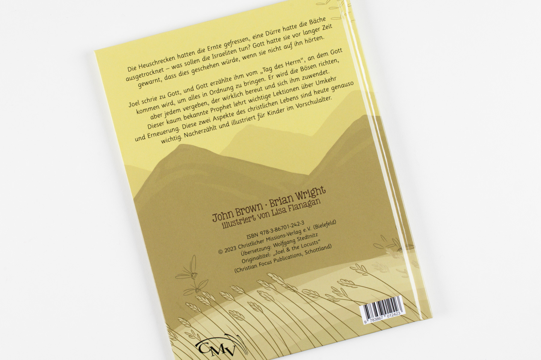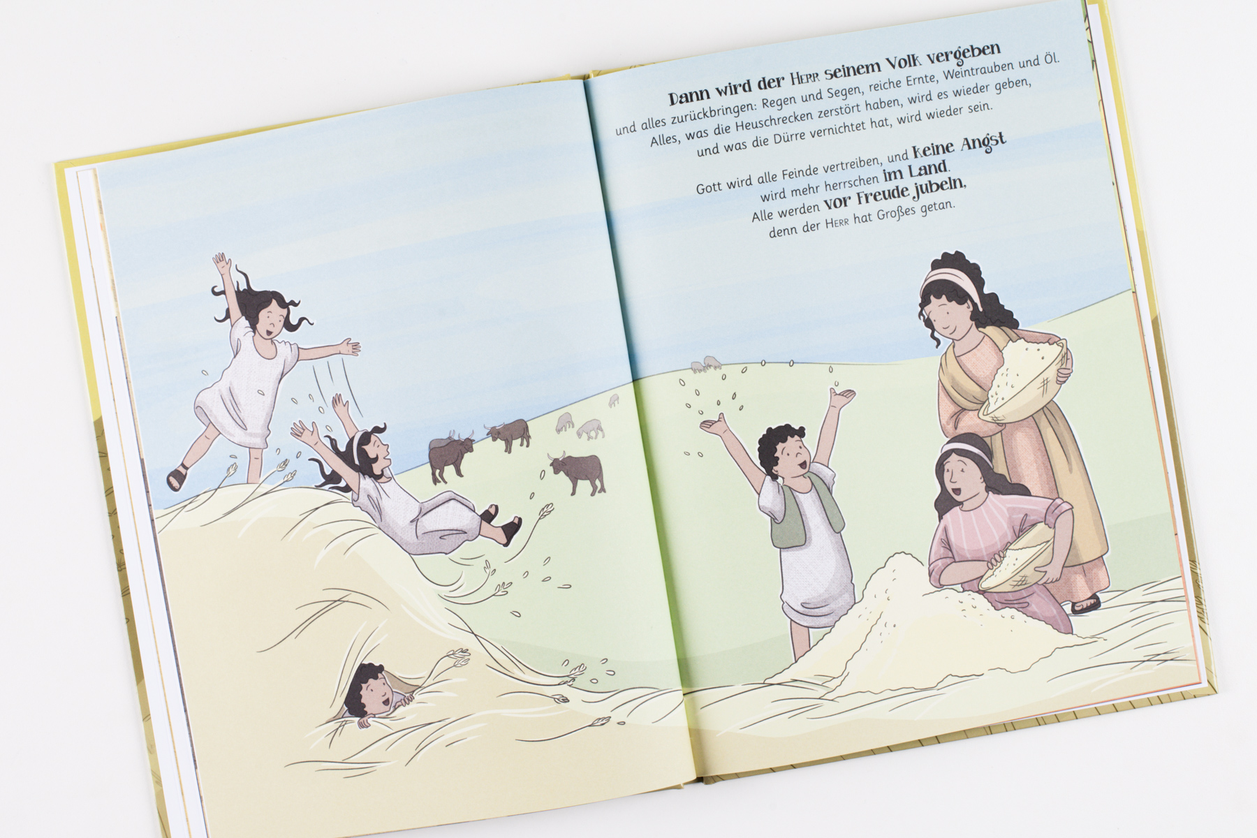 Die Heuschrecken hatten die Ernte gefressen, eine Dürre hatte die Bäche ausgetrocknet – was sollen die Israeliten tun? Gott hatte sie vor langer Zeit gewarnt, dass dies geschehen würde, wenn sie nicht auf ihn hörten. Joel schrie zu Gott, und Gott erzählte ihm vom "Tag des Herrn", an dem Gott kommen wird, um alles in Ordnung zu bringen. Er wird die Bösen richten, aber jedem vergeben, der wirklich bereut und sich ihm zuwendet. Dieser kaum bekannte Prophet lehrt wichtige Lektionen über Umkehr und Erneuerung. Diese zwei Aspekte des christlichen Lebens sind heute genauso wichtig. Nacherzählt und illustriert für Kinder im Vorschulalter.