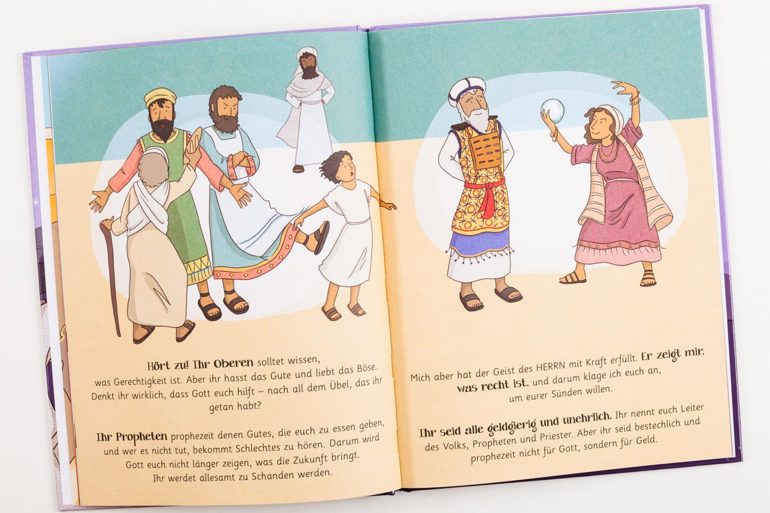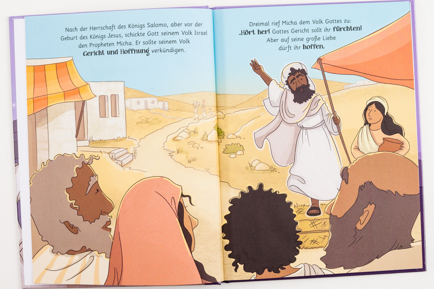 Micha predigte nach der Zeit des Königs Salomo und vor der Zerstörung des Tempels durch die Babylonier. Die Israeliten wollten nicht hören, was der Prophet ihnen ankündigte: "Kein Stein wird hier auf dem anderen bleiben, und ihr werdet in die Fremde geführt werden. Gott straft eure Bestechlichkeit und Bosheit." Doch Micha hatte auch eine frohe Botschaft für Israel und für uns: "Gottes Zorn dauert nicht ewig. Aus der kleinen Stadt Bethlehem wird ein Retter kommen, der Israel und die Welt erlösen wird."