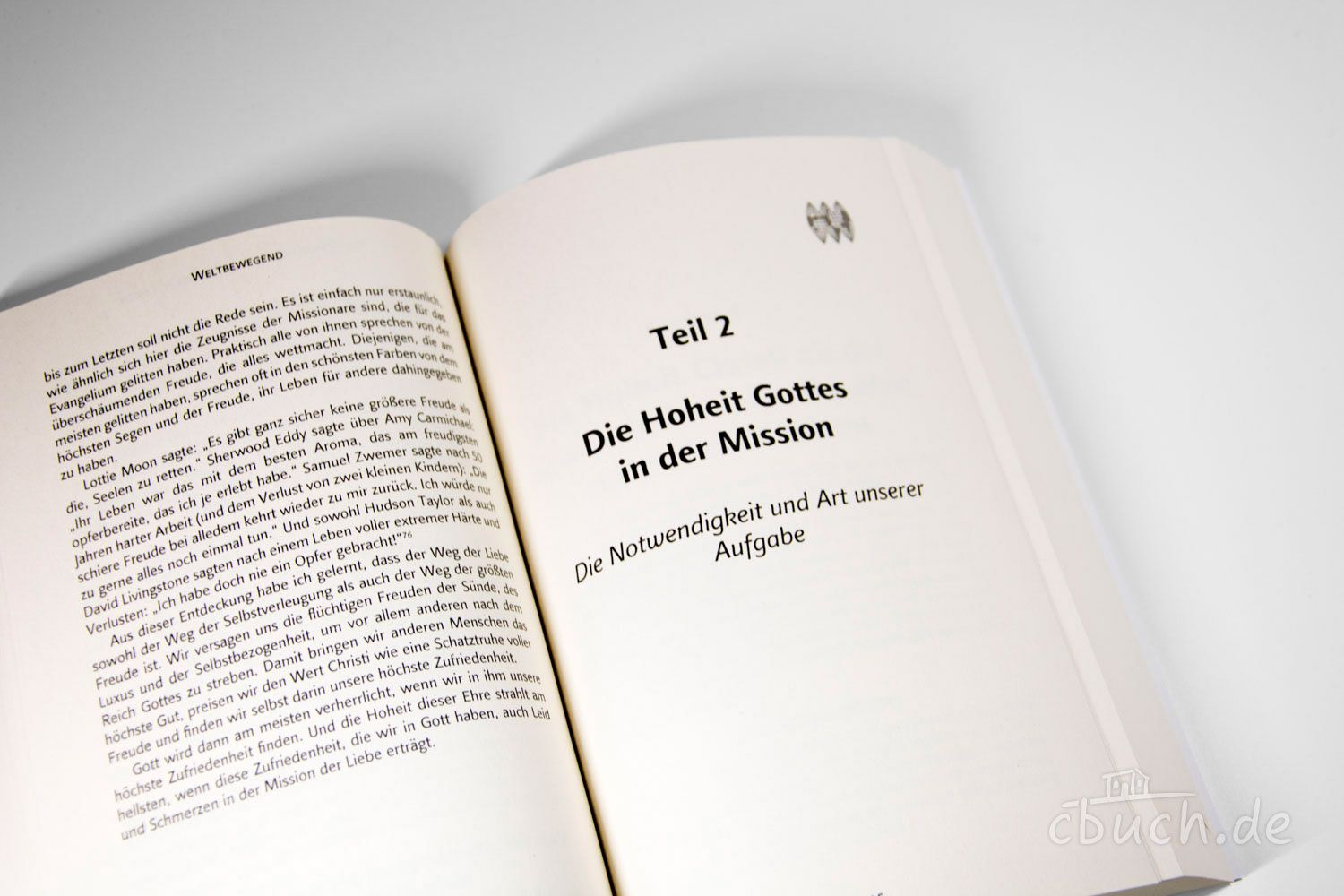 In seinem Buch "Sehnsucht nach Gott" hat John Piper bereits angedeutet, was für Auswirkungen es auf die Mission hat, wenn wir zutiefst zufrieden sind in Gott und er dadurch am meisten verherrlicht wird. "Weltbewegend" vertieft nun diesen Gedanken und entfaltet ihn noch detaillierter in Bezug auf die Weltmission.