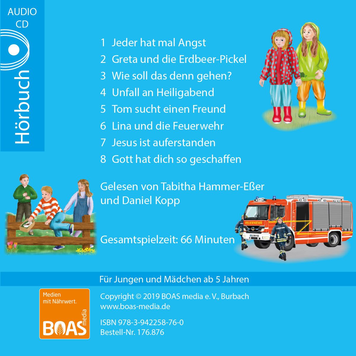 Mattis traut sich nicht, die große Wasserrutsche im Freibad hinab zu rutschen. Sanja möchte auch so bewundert werden wie ihre Klassenkameradin. Auf der Suche nach einem Kätzchen trifft Benny einen Jungen, der im Rollstuhl sitzt. Und Pauline freut sich auf Heiligabend, doch dann stürzt sie und muss ins Krankenhaus. In acht spannend erzählten Geschichten aus dem Kinderalltag lernen Kinder im Vorschul- und Grundschulalter, dass sie jeden Tag Gottes Hilfe erleben können.