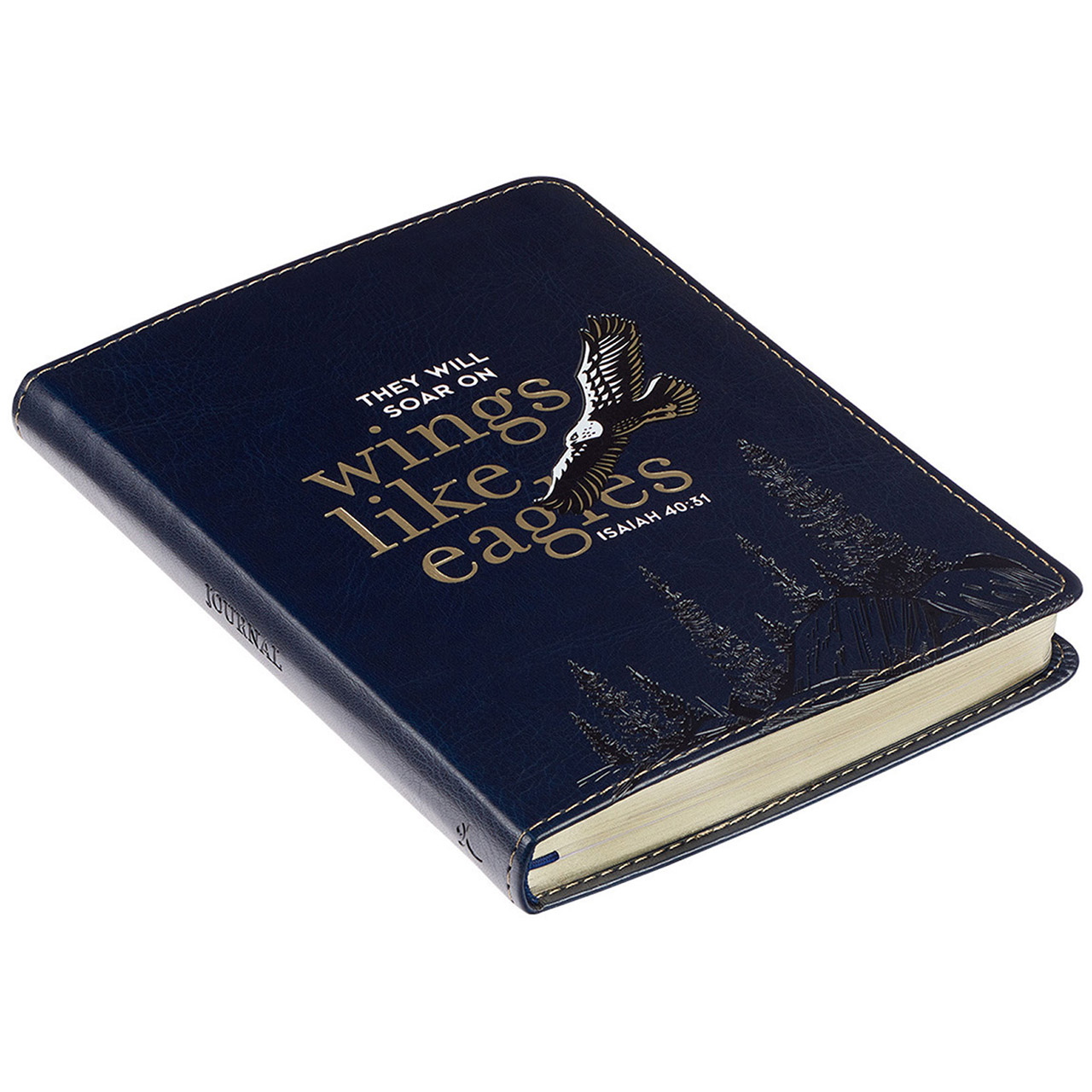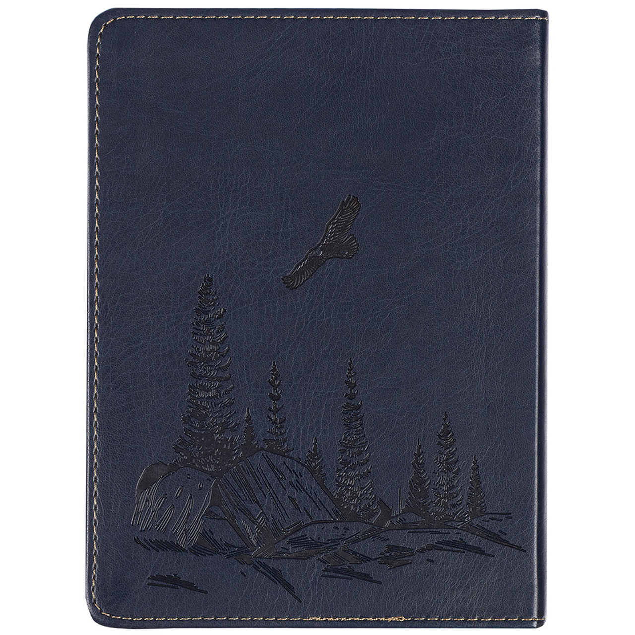 Der Jesaja-Vers spricht Gottes Verheißung aus für alle, die auf ihn vertrauen. Mit markanter Adlersilhouette, Prägungen in natürlichen Formen auf Vorder- und Rückseite und Goldfolien-Akzenten.