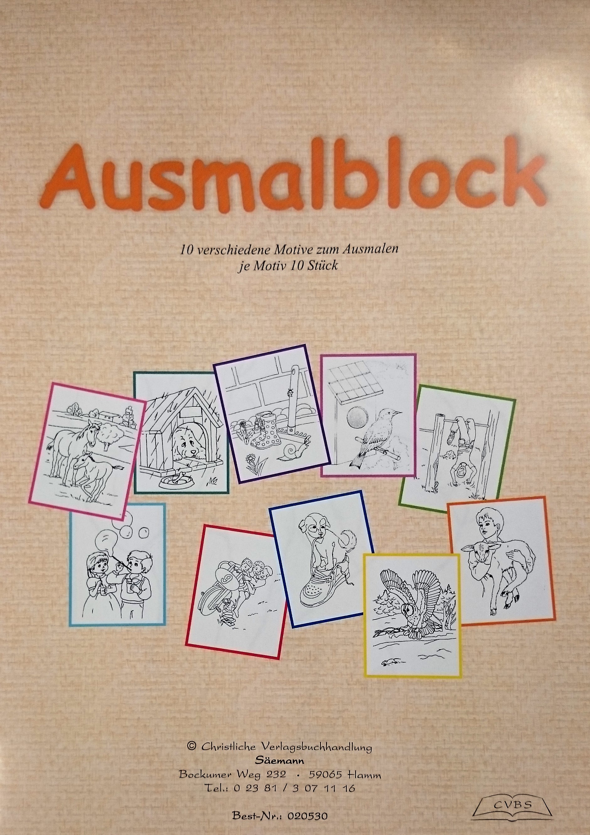 ABC-Serie für Kinder im VorschulalterB - Farben und Formen richtig anwenden Ausmalbilder zu biblischen Geschichten ist ein Malheft mit 60 Bildern, welche verschiedene alt- und neutestamentliche Geschichten illustrieren.2. leicht überarbeitete Auflage in praktischer und stabiler Spiralbindung.Die ABC-Serie ist dafür beabsichtigt, im Heim unter elterlicher Aufsicht benutzt zu werden. Sie bietet konstruktives Material, um das Kind für die Schule vorzubereiten. Die Serie kann Ihnen eine Hilfe sein, um auf die Frage des Vorschulkindes „Was kann ich tun?“ zu antworten. Füllen Sie den jungen Verstand mit der Wahrheit anstatt mit Fantasie, wovon viele heutige Kinderliteratur durchdrungen ist.Sechs 68-seitige Arbeitshefte bieten Übungen zum Ausmalen, Ausschneiden, Aufkleben, Zahlen-Kennenlernen, Buchstaben-Erkennen und Anweisungen-Befolgen. Diese Arbeitshefte sollen dem Kind helfen, sich für seine Umwelt zu interessieren, sie wertzuschätzen, seinen Wortschatz zu erweitern, anderen mit Hilfsbereitschaft und Höflichkeit zu begegnen usw. Die verschiedenen Übungsmöglichkeiten und geduldige Anweisung helfen dem Kind, seine Fertigkeiten weiter zu bilden. Unser Wunsch ist es, dass Kinder Freude an diesen Heften haben! Es ist jedoch nicht die Absicht, ein überhöhtes Selbstbewusstsein zu fördern. Das höchste Ziel ist, dass das Kind eine gehorsame und kooperative Einstellung entwickelt.Jedes Heft enthält Anweisungen für die Eltern. Ferner gibt es Anregungen, um die Kinder auf viele alltägliche Dinge aufmerksam zu machen, welche die Begriffe, die gerade gelehrt werden, einprägen helfen.