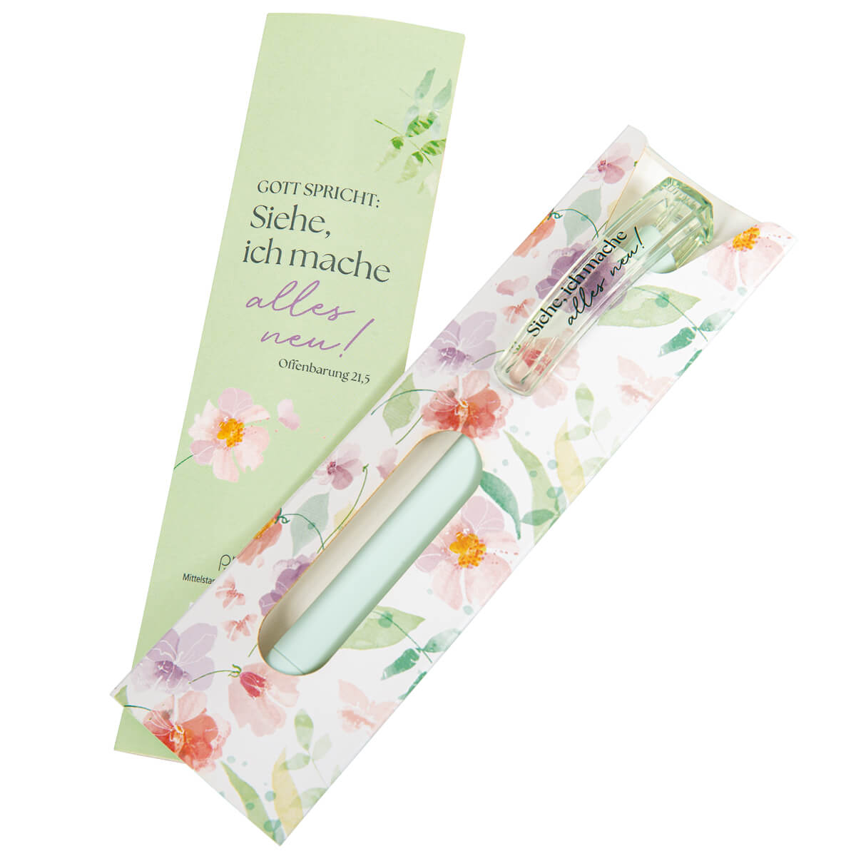 Kugelschreiber ist in einem stabilen Papp-Etui mit Jahreslosungsmotiv verpackt.