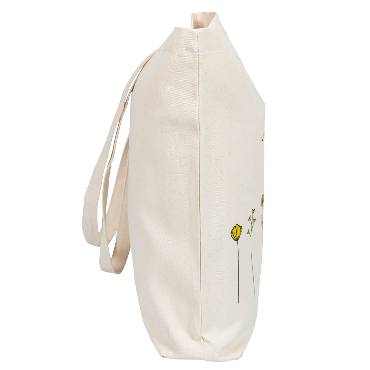 Strapazierfähige Baumwolltasche mit langen Henkeln, praktisch für Einkauf und Freizeit. Zweifarbig bedruckt mit toller Aussage "Love like Jesus" und stilisierten Blumen.
