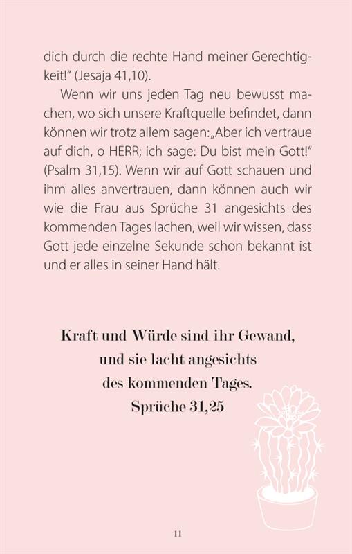 Warum kann die Frau aus Sprüche 31 lachen? – Sie kennt ihren Gott und weiß, dass sie auf ihn vertrauen kann. Gott trägt sie durch den Alltag und schenkt ihr die Zuversicht, mit einem Lächeln in die Zukunft zu blicken.