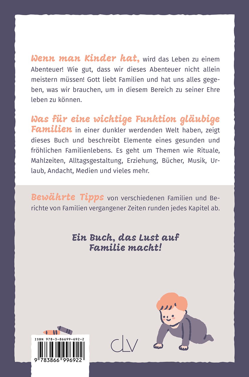 Was für eine wichtige Funktion gläubige Familien in einer dunkler werdenden Welt haben, zeigt dieses Buch und beschreibt Elemente eines gesunden und fröhlichen Familienlebens. Es geht um Themen wie Rituale, Mahlzeiten, Alltagsgestaltung, Erziehung, Bücher, Musik, Urlaub, Andacht, Medien und vieles mehr.