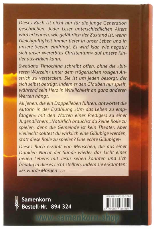 Svetlana schreibt offen, ohne die »bitteren Wurzeln« unter dem trügerischen rosigen Anstrich zu verstecken. Sie ist um jeden besorgt, der sich selbst beraubt, indem er den Glauben nur spielt, während sein Herz in Wirklichkeit an ganz anderen Werten hängt.