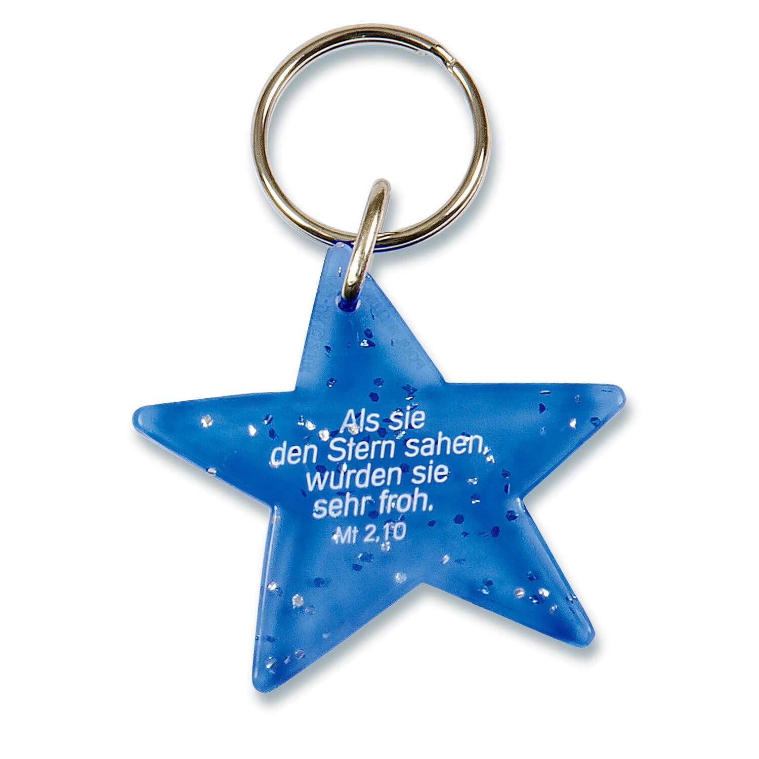 Schlüsselanhänger aus Acryl mit Glitter, 5 cm, bedruckt mit "Als sie den Stern sahen wurden sie sehr froh. Mt 2,10"