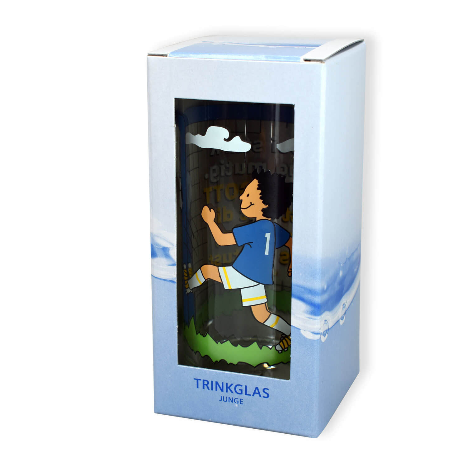 Ein Glas für Jungen! 0,25 ltr., Qualitätsglas mit farbigem Dekor, in Einzelverpackung